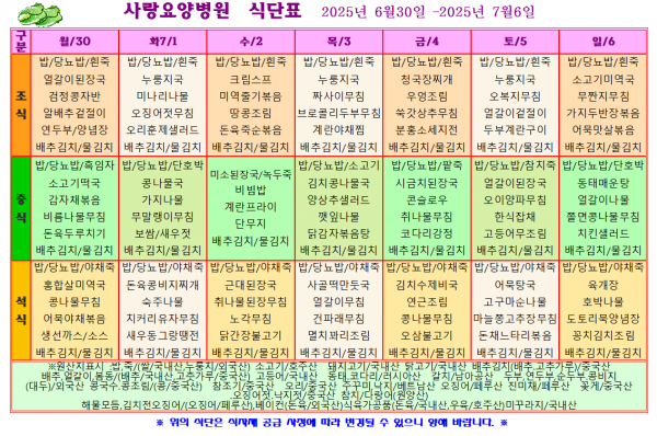 사랑요양병원 7월 첫째주 식단표