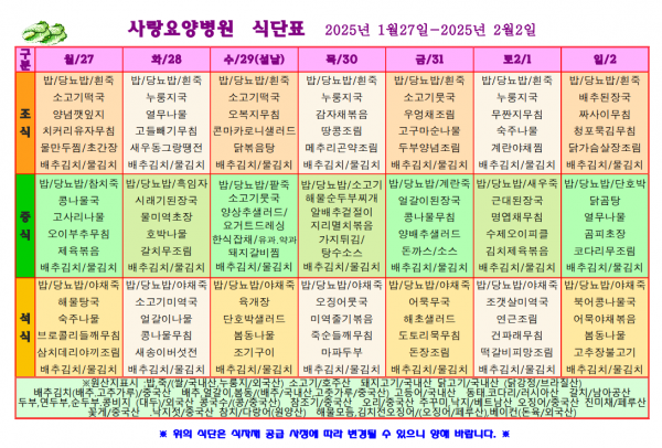 사랑요양병원 1월 넷째주 식단표