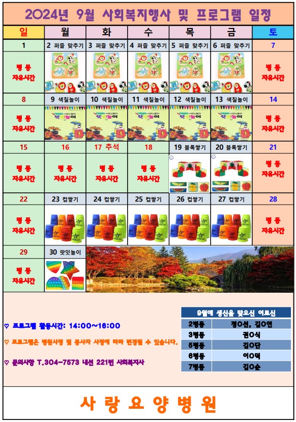 2024년 9월 사회복지 프로그램 일정
